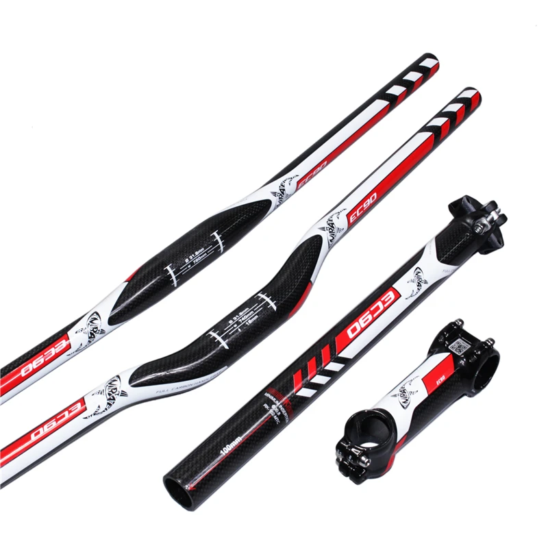 MTB углеродного волокна кожа EC90 волокна велосипед набор 3 к плоским стояк руль + основа + подседельный MTB горный велосипед Запчасти