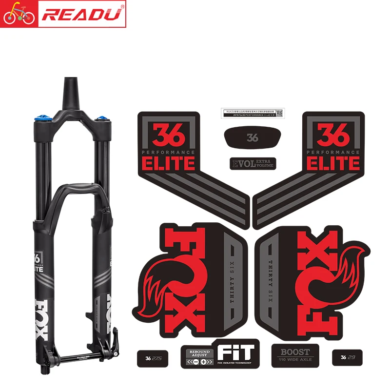 2018 fox float 36, элитные наклейки на вилке, mtb bike fox 36, наклейка на переднюю вилку