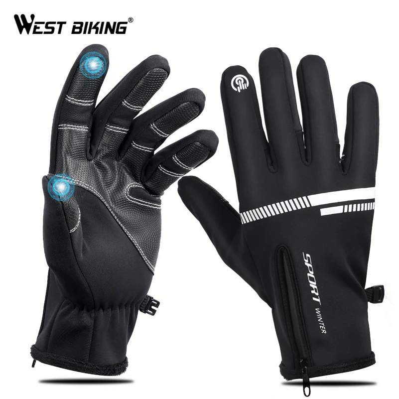 West biking велосипед сенсорный экран Утепленные зимние перчатки ветрозащитные теплые перчатки полный палец для езды на велосипеде мужские вод...