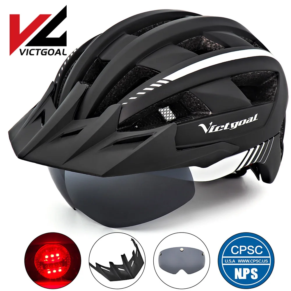 VICTGOAL MTB велосипедный шлем для мужчин и женщин, дышащие велосипедные шлемы, светодиодные Солнечные козырьки, очки, дорожный горный велосипед, шлем