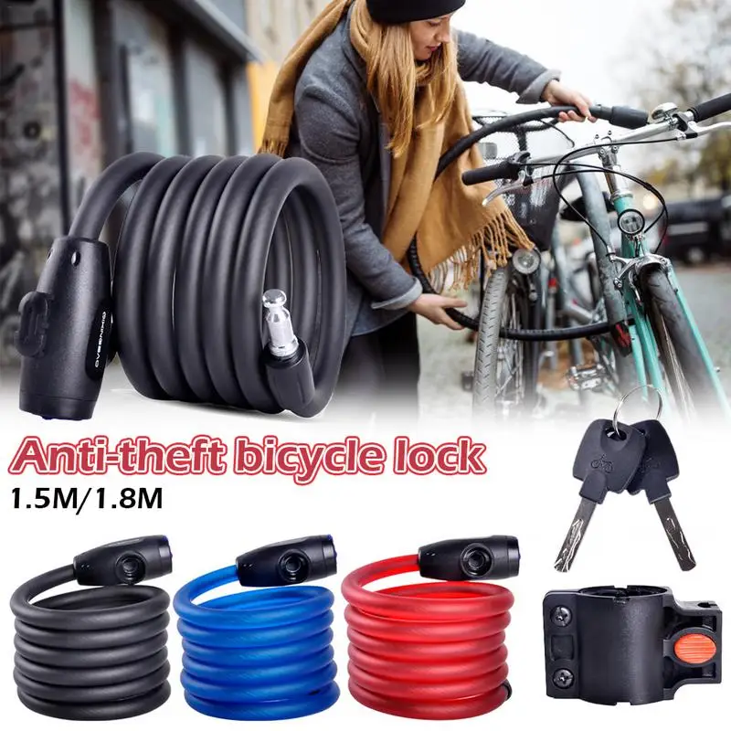 М 1,8-1,5 м длинный стальной провод велосипедный замок Противоугонный замок электрический автомобиль портативный стальной Кабель Велосипедн...