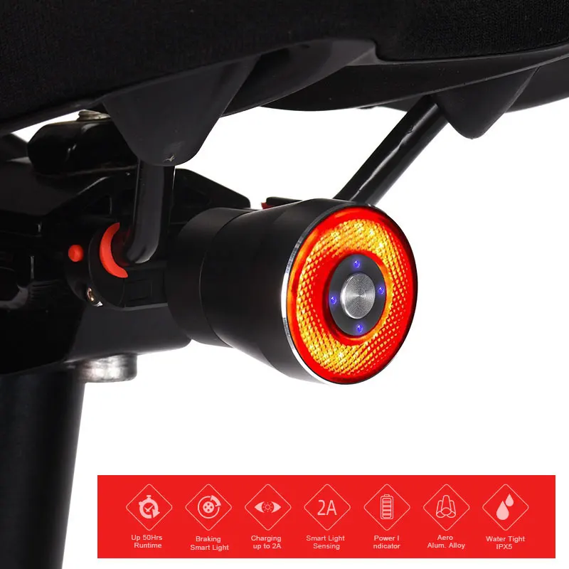 Умный светодиодный фонарь заднего цикла с креплением на седло велосипеда для торможения, USB зарядка 400 мАч, 30 часов, стикер «фонарь»