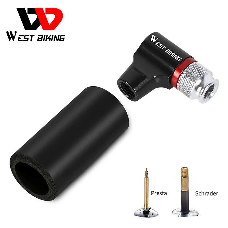 WEST BIKING Портативный СО2 насос алюминиевый сплав велосипедный насос для Schrader Presta адаптер безопасности автоматический ручной мини-насос
