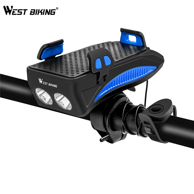 WEST BIKING, многофункциональный велосипедный светильник, зарядка через USB, 400 люмен, велосипедный передний светильник, фонарь для вспышки, держатель для телефона, внешний аккумулятор 4 в 1