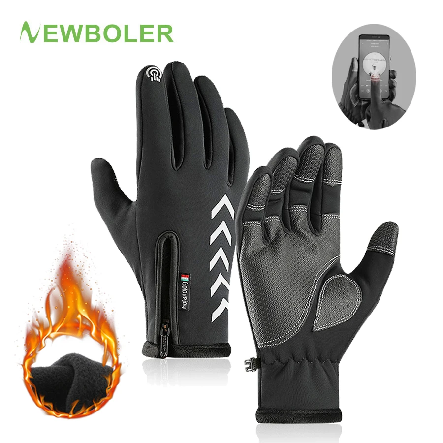 NEWBOLER тепловые теплые зимние уличные спортивные велосипедные перчатки для катания на лыжах Сенсорный экран MTB дорожный велосипед велосипед...