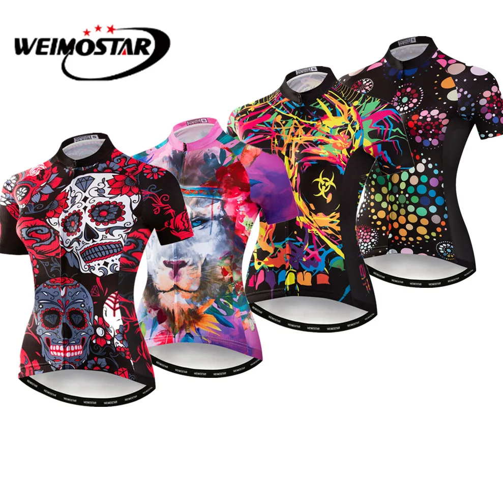 Женский трикотажный топ Weimostar, велосипедные майки с коротким рукавом, велосипедные майки с коротким рукавом, велосипедные майки с красным черепом, 2019