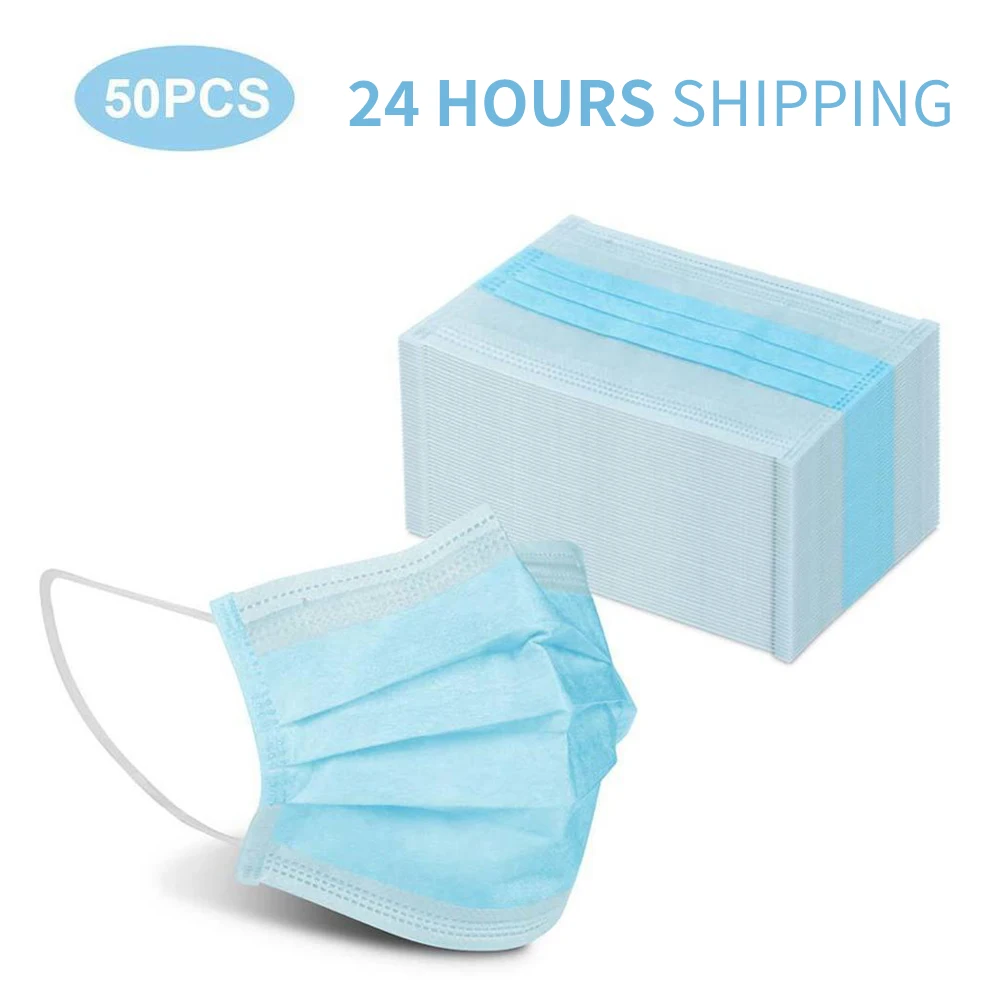 1 шт/50 шт одноразовые маски маска для рта 3 слоя анти-вируса Анти-пыль нетканые эластичные ушные петли салонные маски для лица, рта