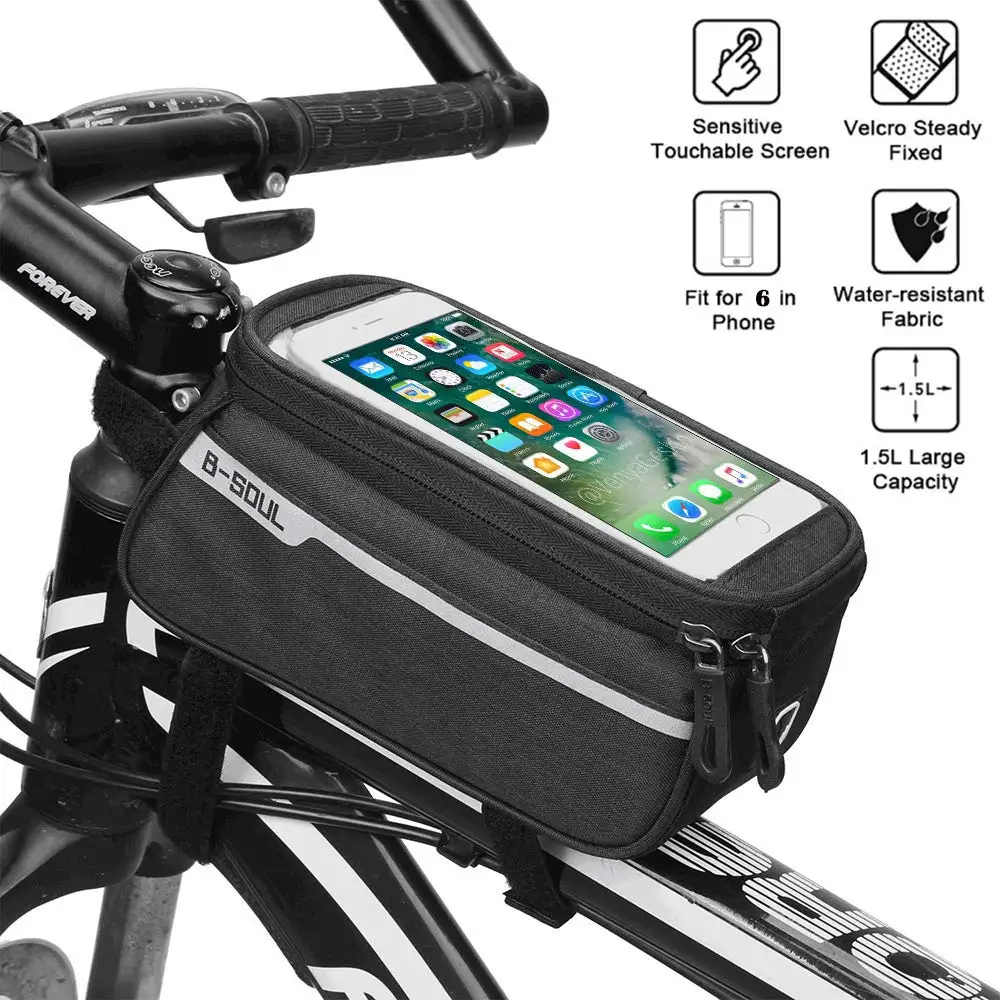B-SOUL Водонепроницаемый MTB дорожный велосипед Передняя труба сумка 6 дюймов телефон сенсорный экран седло мобильный телефон с отверстием для наушников Аксессуары для велосипеда