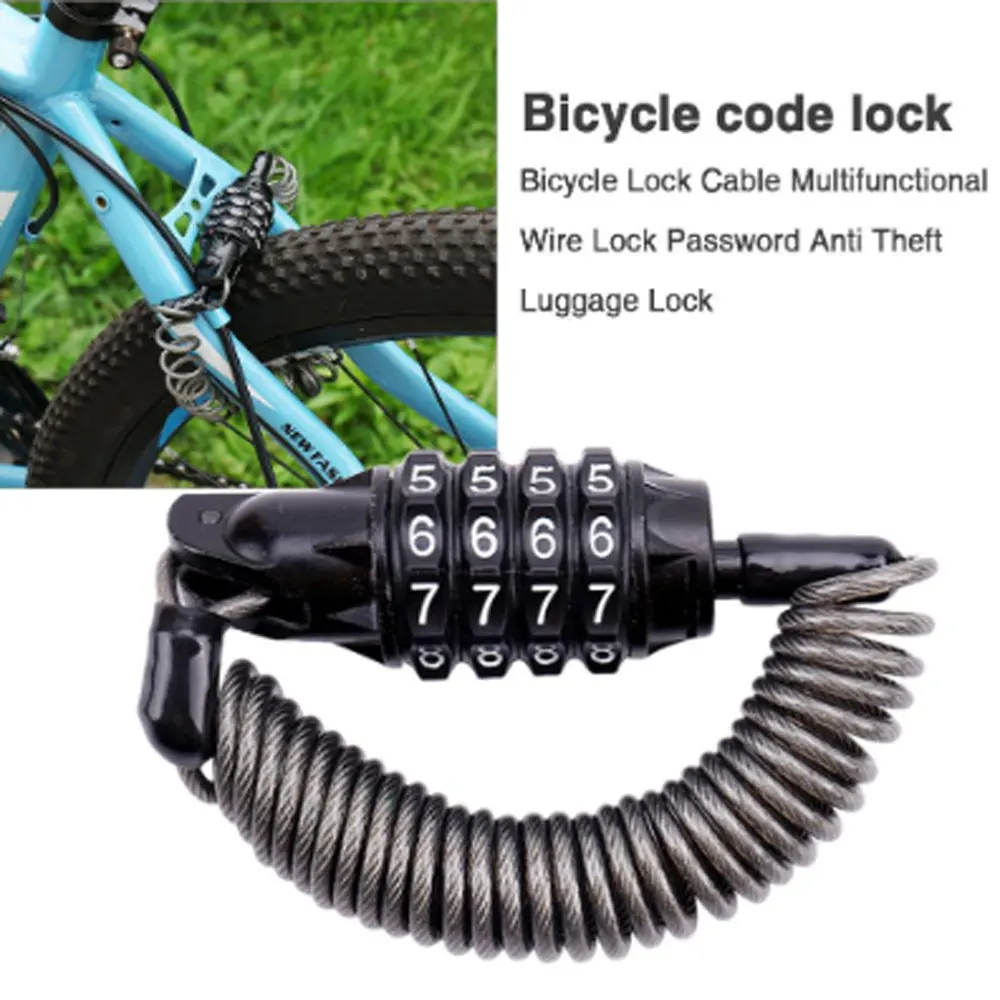 Велосипедный кодовый замок, 4 цифры, комбинированный пароль, весенний Противоугонный велосипедный замок, пружинный дисковый кабель, провод, защитный замок для езды на велосипеде