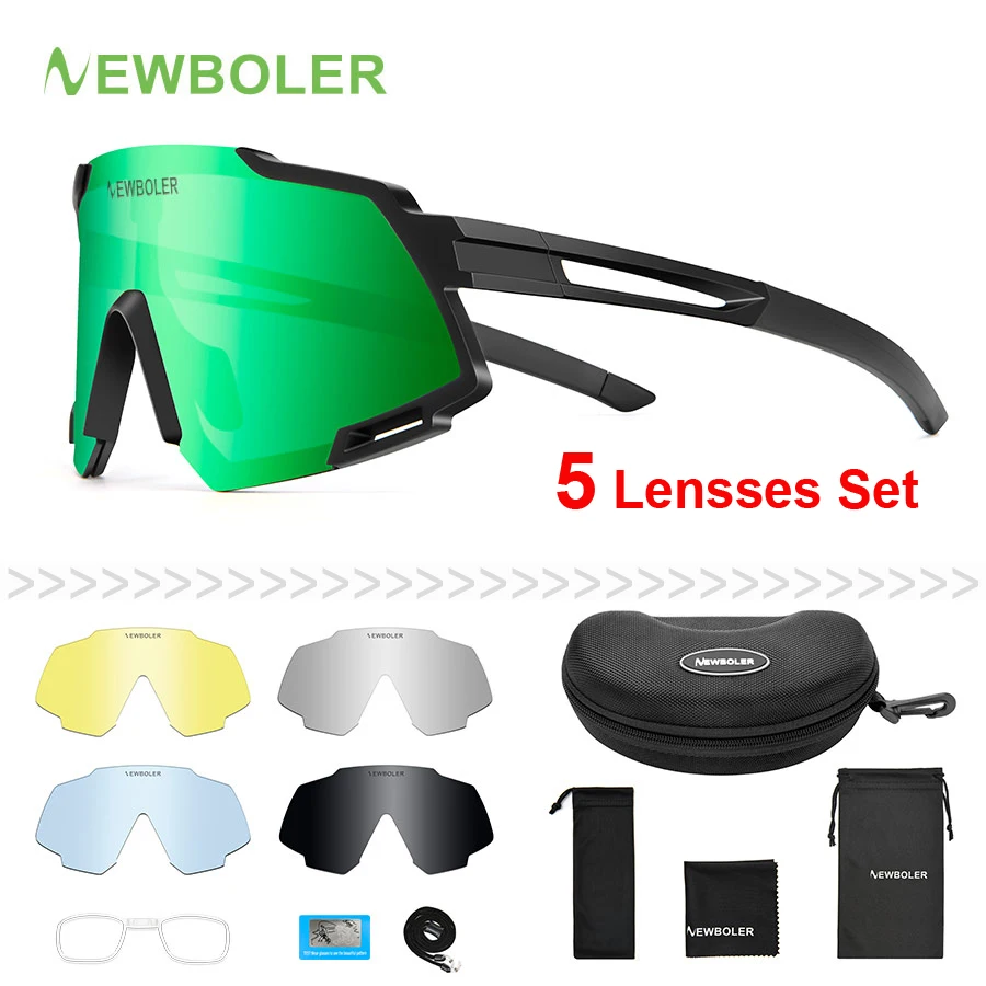 NEWBOLER, 5 линз, Ультралегкие спортивные поляризационные солнцезащитные очки, велосипедные очки для мужчин и женщин, UV400, очки для езды на велос...