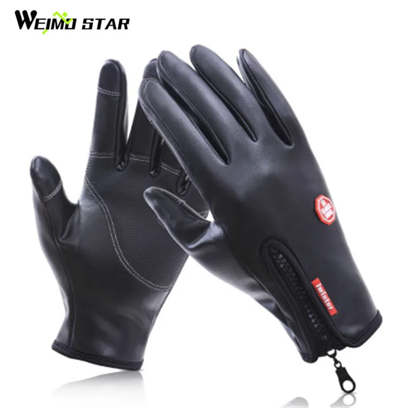Weimostar полный палец Перчатки Сенсорный экран Зима Водонепроницаемый MTB велосипеда Прихватки для мангала ветрозащитный Велосипедный Спорт П...
