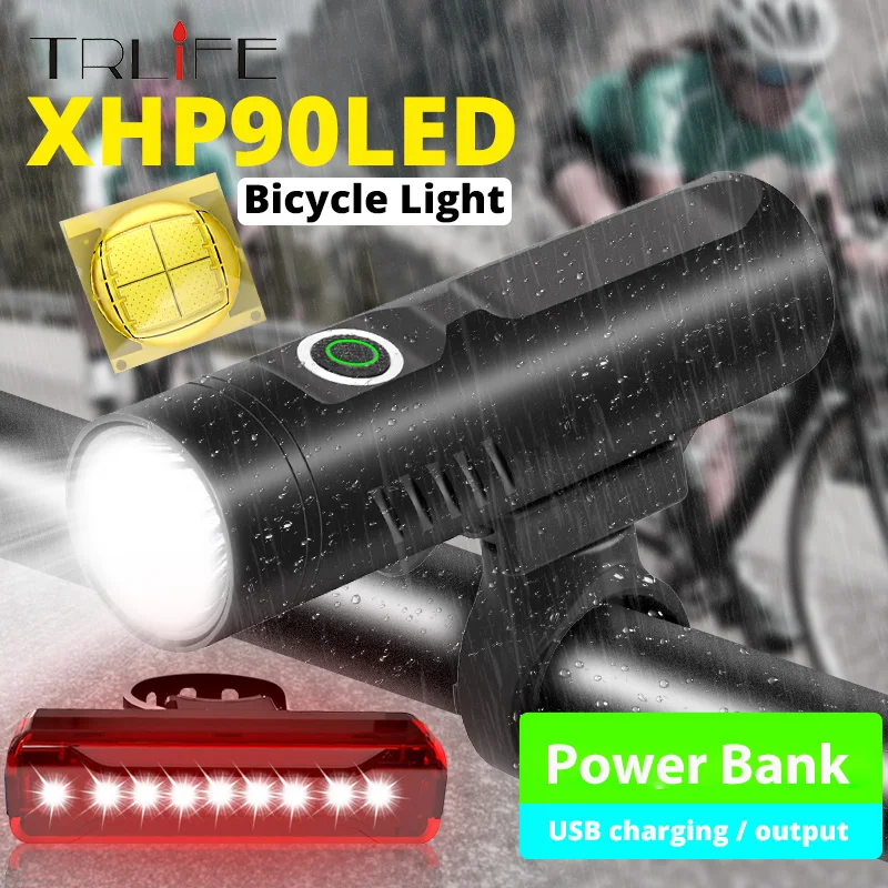 Мощный велосипедный фонарь TRLIFE XHP90 P50 L2 T6, велосипедный светодиодный фонарь, перезаряжаемая батарея USB, водонепроницаемый Передний фонарь, велосипедная лампа