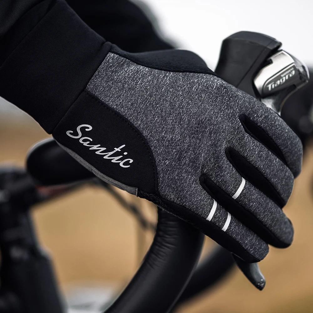 Santic перчатки для велоспорта мужские черные гелевые теплые полный палец с сенсорной функцией противоударные теплые 9P057/9P056