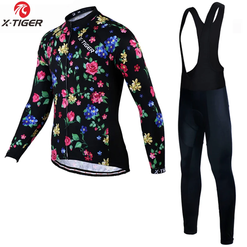 Осенняя одежда для велоспорта X-Tiger с защитой от ультрафиолета, 100% полиэстер, одежда для велоспорта MTB, велосипедная одежда с длинным рукавом, Женский комплект для велоспорта, Джерси