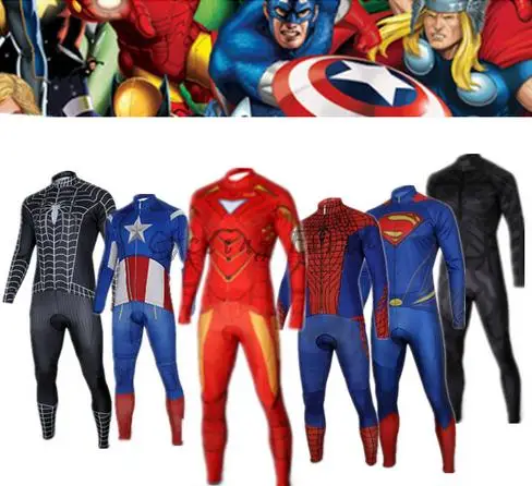 Капитан Америка Супермен Человек паук Железный человек 2014 Зима термальность флисовая одежда трикотаж комбинезон велосипед велосипедный с