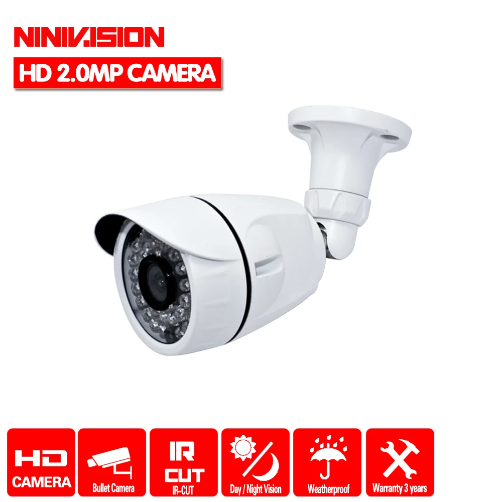 Камера Наружного видеонаблюдения NINIVISION, водонепроницаемая инфракрасная камера с металлической черной Пулей, 1080 пикселей, 2 Мп, AHD -H, 3000TVL
