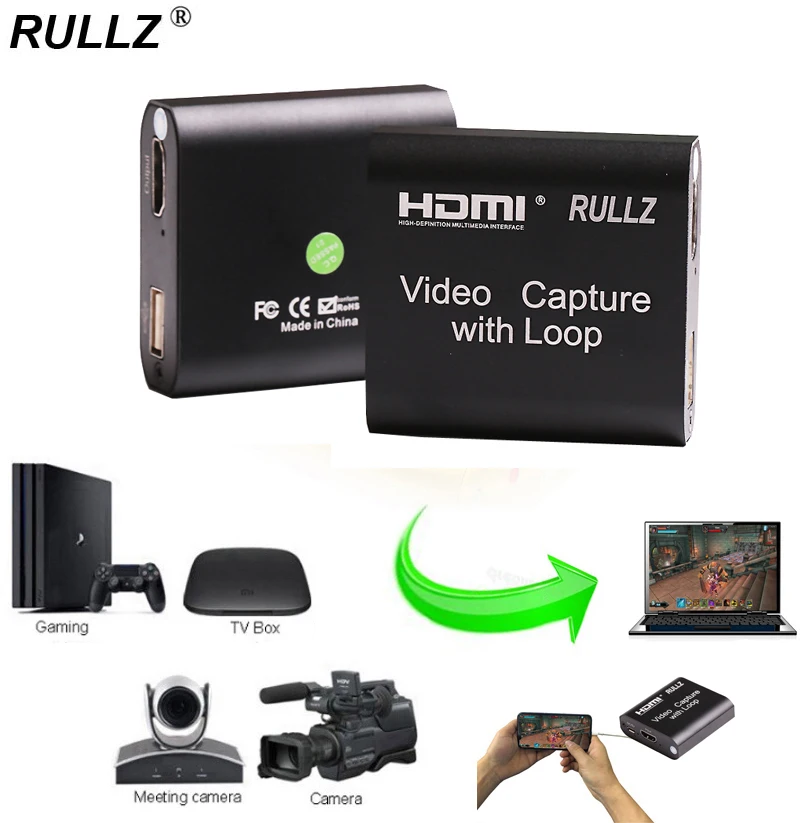Rullz Loop out аудио видео устройство захвата HDMI карта захвата 4K 1080P USB 2,0 игра Запись в прямом эфире коробка для PS4 DVD камеры