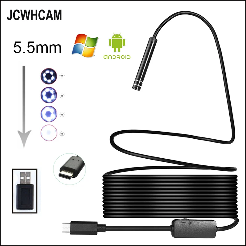 Jcwhcam андроид эндоскоп 5.5 мм LED USB Камера Тип C usb эндоскопическая осмотр 5 м жесткий/мягкий Водонепроницаемый трубки контроль