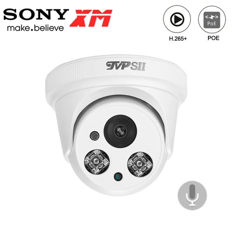 Два массива инфракрасных светодиодов пластик 5MP/4MP/2MP H.265 + 25fps Крытый аудио POE IP безопасности купольная CCTV Камера