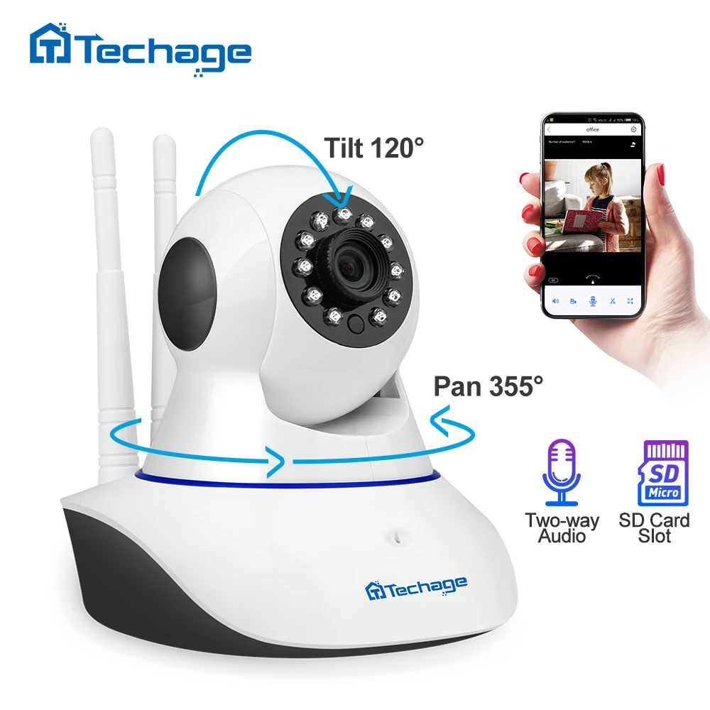 Techage 1080 P 720 P Беспроводной IP Камера Ночное видение детские для слежки за домашней безопасностью 2MP 2-путь аудиозаписи Wi-Fi камера видеонаблюден...