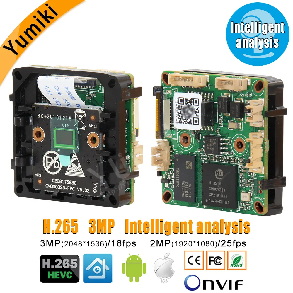 H.265 3MP 2048*1536 пикселей Hi3516C + SonyIMX323 1/3 "интеллектуального анализа IP модуль камеры для системы доска с объектива ONVIF xmeye