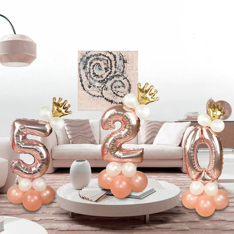 Розовое золото, 1, 2, 3, 4, 5, 6, 7, 8, 9, фольгированный шар с днем рождения, надувной набор шариков, Свадебный Праздничный юбилей, вечеринка, украшение
