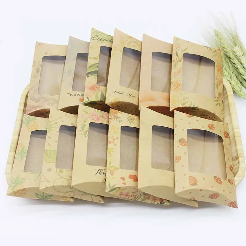 10 шт. 12,5x8x2 см бумажная Подарочная Подушка Коробка крафт цветок ананас печатная коробка с ПВХ окна ювелирные изделия ремесла дисплей коробка