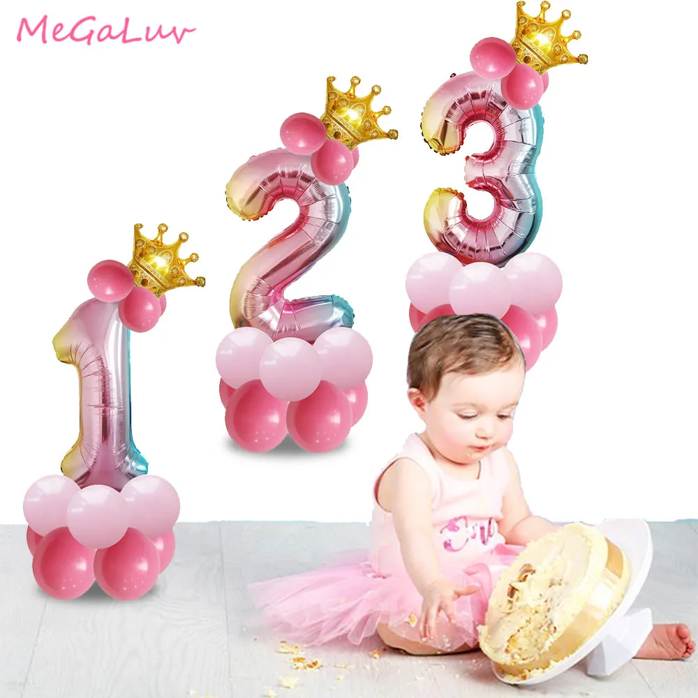 17 шт. 1st 2nd 3th на день рождения воздушные шары 32 дюймов Радуга номер шарики в форме цифр День рождения украшения для девочек вечерние поставки ...