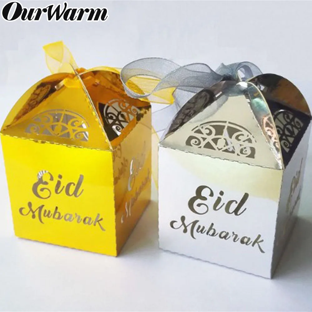 OurWarm 10 шт счастливый ИД Мубарак конфетная коробка украшения для Рамадана бумажные подарочные коробки исламский мусульманский аль-Фитр Eid партии поставки 4 цвета