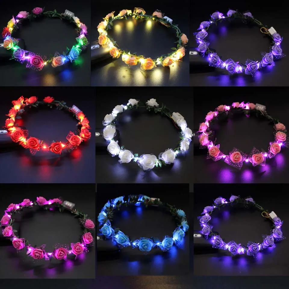 Для женщин девочек светодиодный мигающий световой повязка для головы с цветком Головные уборы рождественское свадебное лампа тлеющего зар...