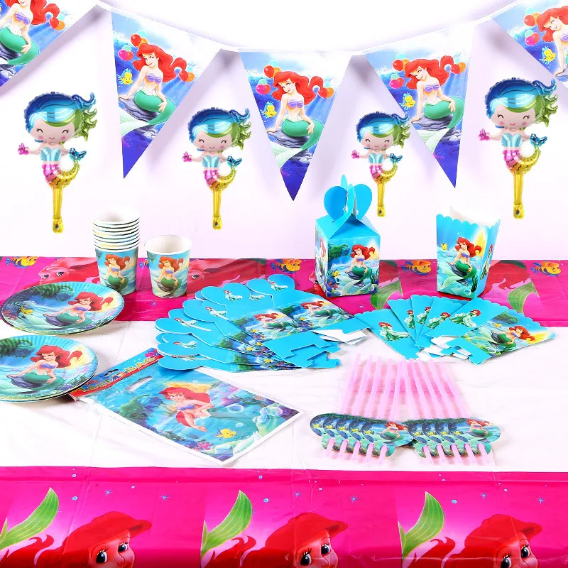 2019 маленькие Русалочки Ариэль вечерние украшения одноразовые столовые приборы бумажный стаканчик, тарелка, шляпа, детский душ, воздушные ш...