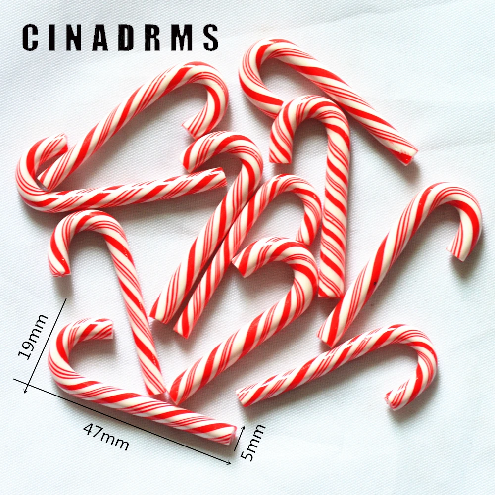 10 шт., 47ммх19 мм, красно-белые полоски, фимо глина, Рождественская трость, конфета, украшения для рождественской вечеринки, Рождественское украшение, миниатюрные