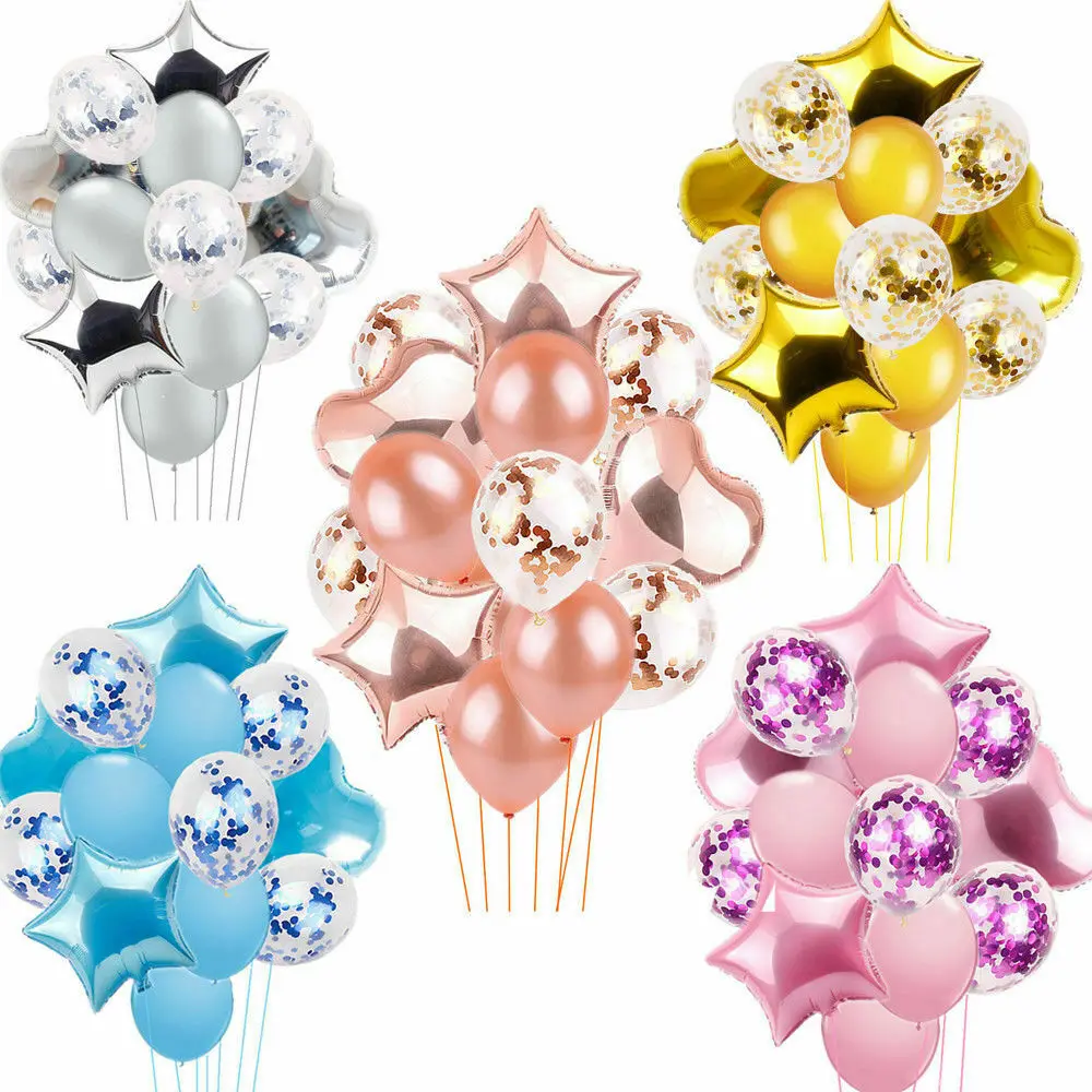 14 шт./компл. шары на день рождения или свадьбу сердце Звездный конфетти фольга шар латексные шары Детские вечерние украшения для свадьбы