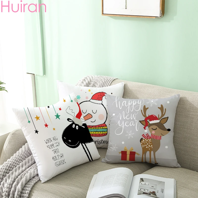 HUIRAN Счастливого Рождества Санта Клаус Лось снеговик мультфильм наволочки с рождественским узором украшения для дома 2019 Подарочное Рождест...