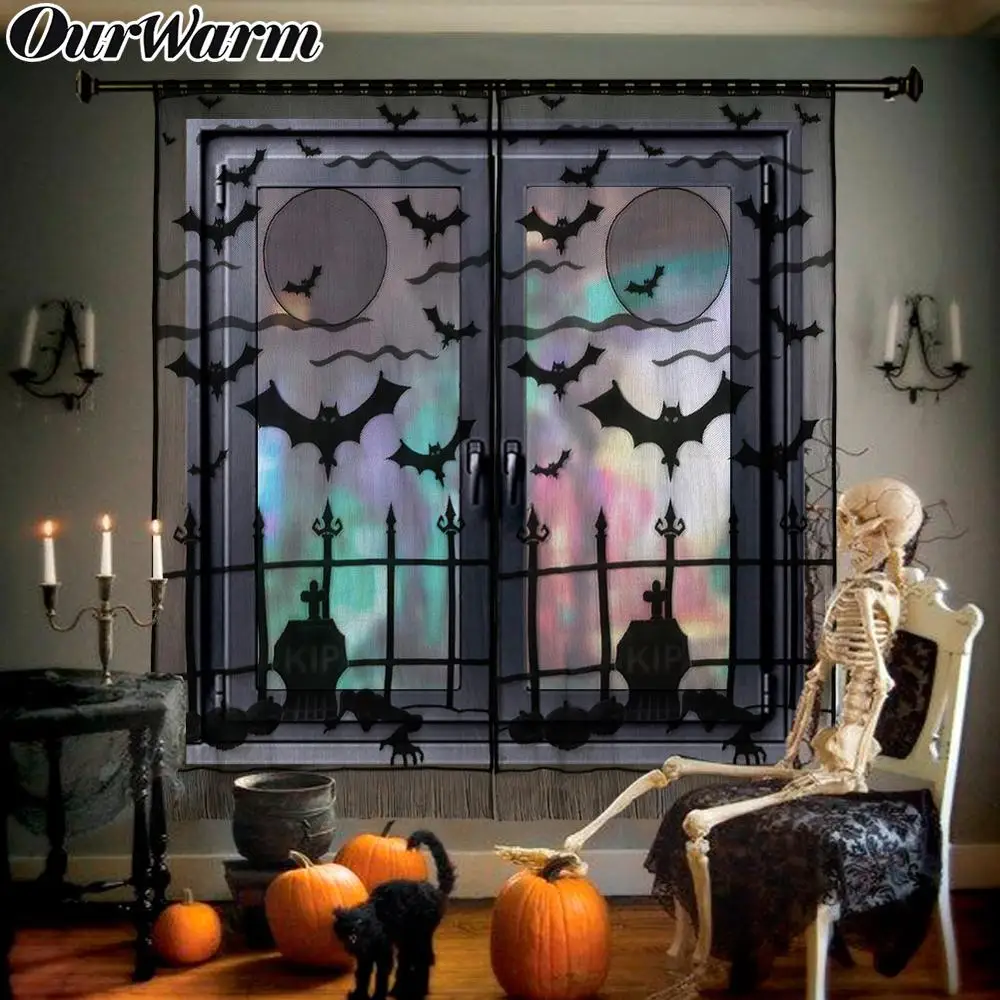 Ourwarm/Вечерние черные кружевные паутинки для Хэллоуина, паутина, летучая мышь, занавес для окна, висячая бутафория для Хэллоуина, декор для Хэллоуина, вечеринки