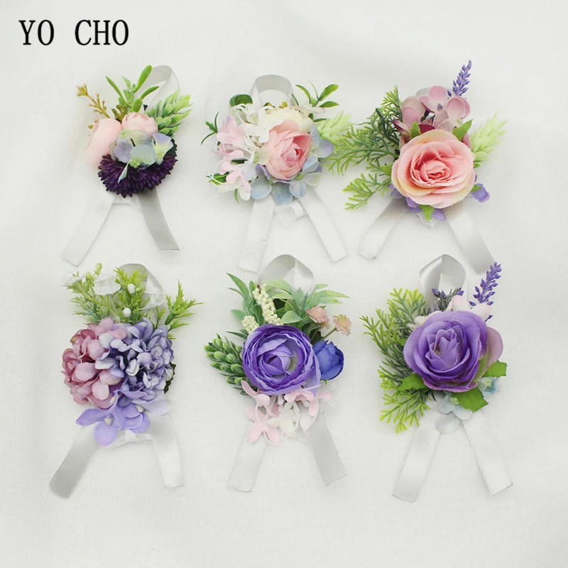 YO CHO искусственный цветок жених бутоньерка свадебная бутоньерка на запястье девушка браслет фиолетовая Роза Фортуна мяч Свадебный планиро...