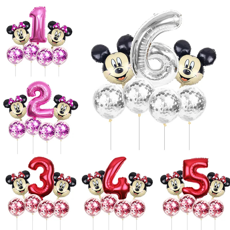 7 шт с днем рождения Микки Минни Маус фольгированные шары Декор Блеск Конфетти шары из латекса детский Душ номер воздушный шар Globos