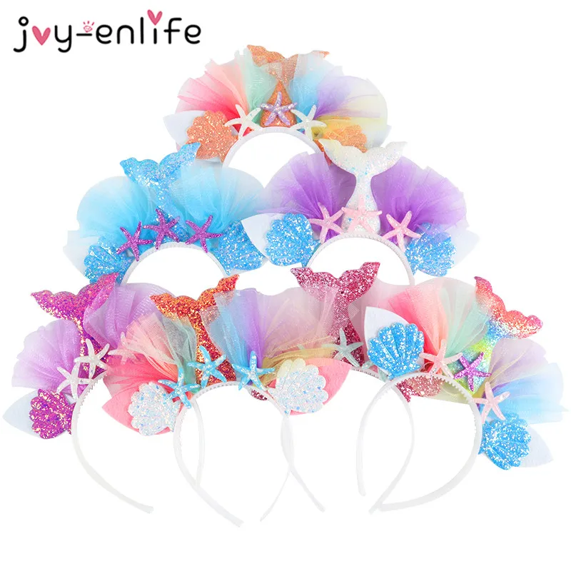 Русалка День рождения Starfish повязка на голову "Принцесса" для девочек для празднования первого дня рождения украшения цветок Головные уборы ...