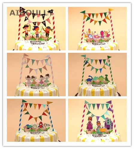 Принцесса пиратский мотив динозавра украшения для кексов мультфильм флажки для торта набор баннеров для мальчиков и девочек день рождения,...