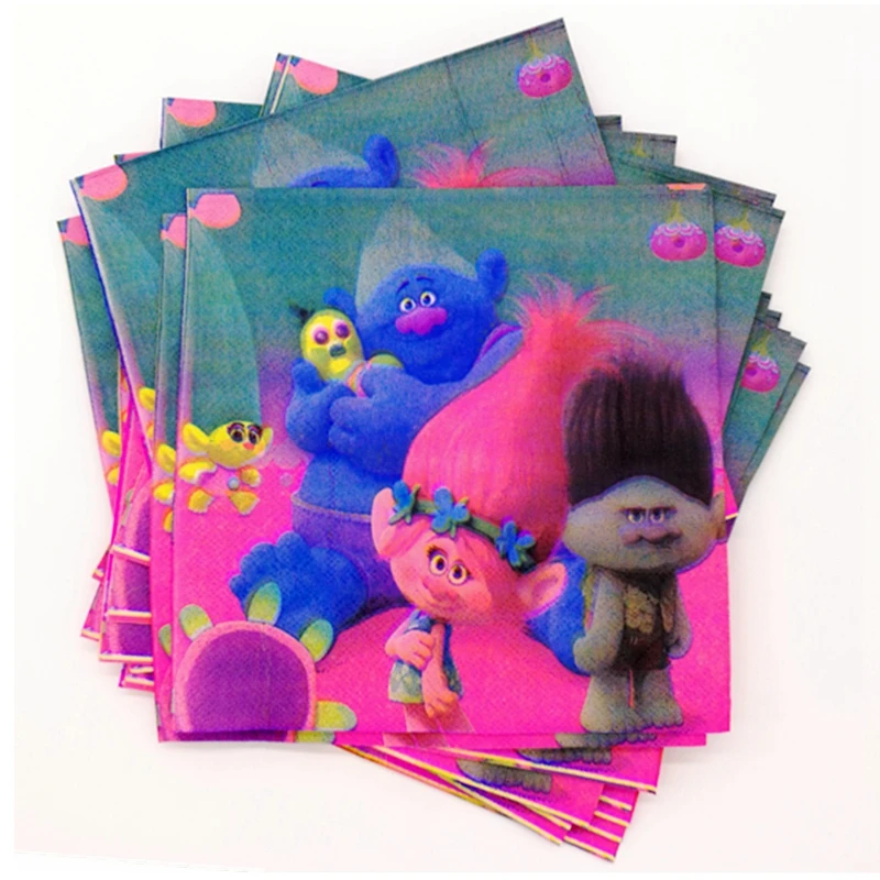 20 шт./партия салфетки с изображениями троллей для дня рождения Салфетка с героями мультфильмов спрос среди детей украшения поставки мультф...