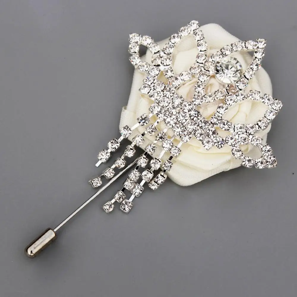 Свадебная бутоньерка цвета слоновой кости для мужчин атласная лента роза Жених Buttonhole серебряные кисточки отворот булавка брошь аксессуары для вечеринки XH180