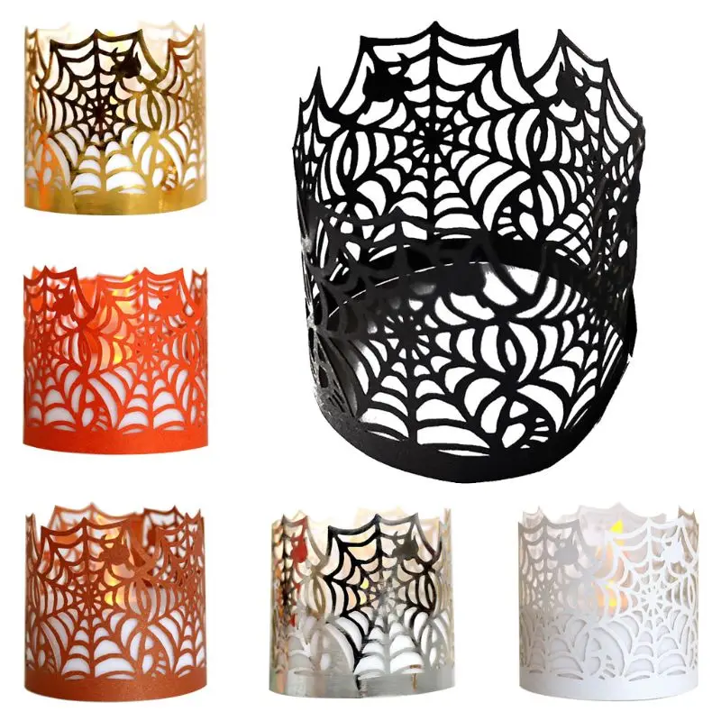 50 шт. Хэллоуин паук веб-бумага лазерная резка полые светодиодные свечи абажур для свечи держатель Свадебная вечеринка домашний декор