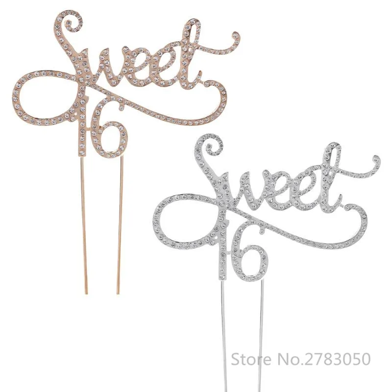 Сладкий 16 торт Топпер 16 день рождения темы со стразами украшения юбилей украшения торта поставки золото/серебро