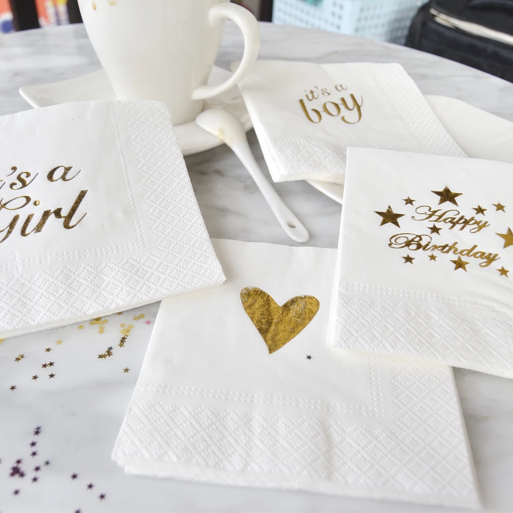 10 шт./лот, золотые бумажные салфетки с днем рождения, декоративные Детские душевые салфетки, декупажные, вечерние, Декор