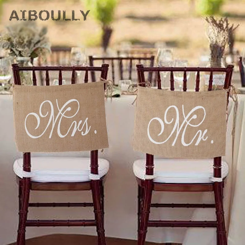 1 пара Романтические свадебные стул место плакат Mr Mrs невеста жених Photo Booth Реквизит Свадебная вечеринка украшения поставки