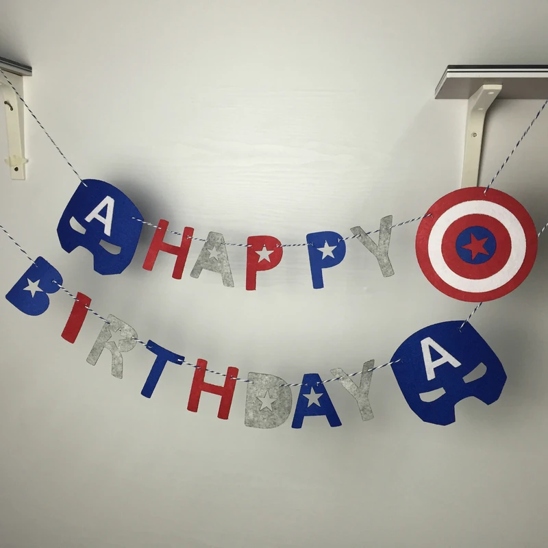 С Днем Рождения украшения баннеров Капитан Америка буквы дети домашние принадлежности Детская комната супергерой детский душ Backddrop