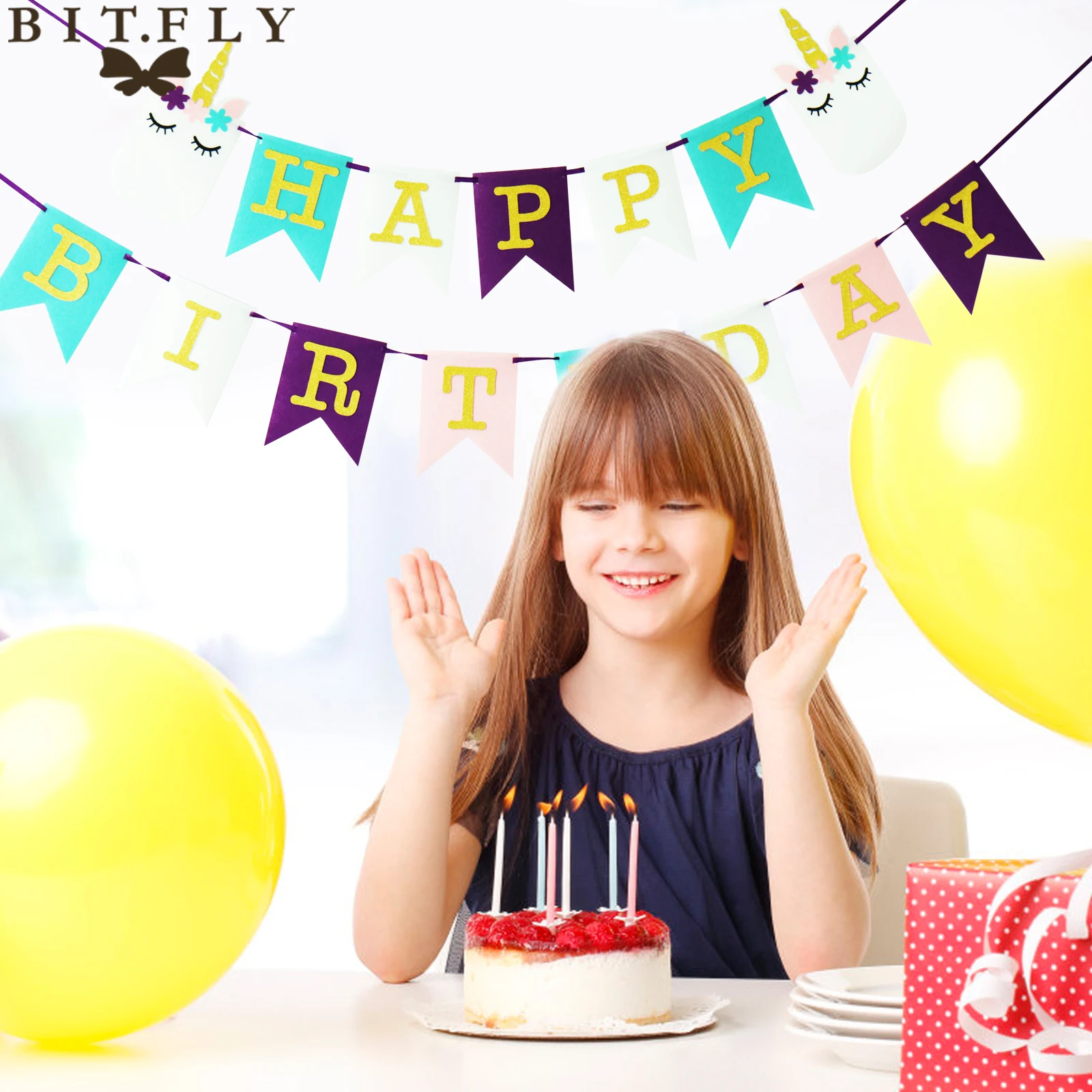 Бит. FLY 3,5 м с днем рождения нетканые тканевые баннеры 1st рождения блеск баннеры единорога День рождения DIY висит украшения