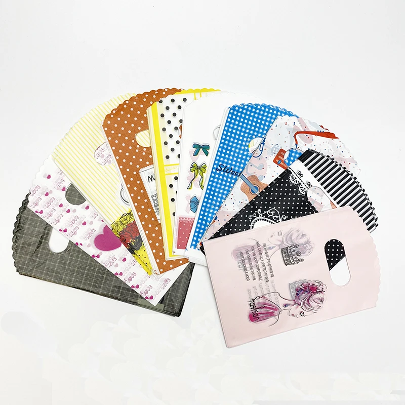 Милые мини-пакеты 9x15 см, 100 шт, много цветов, красивые пластиковые подарочные пакеты для ювелирных изделий с кружевной ручкой для бутиков