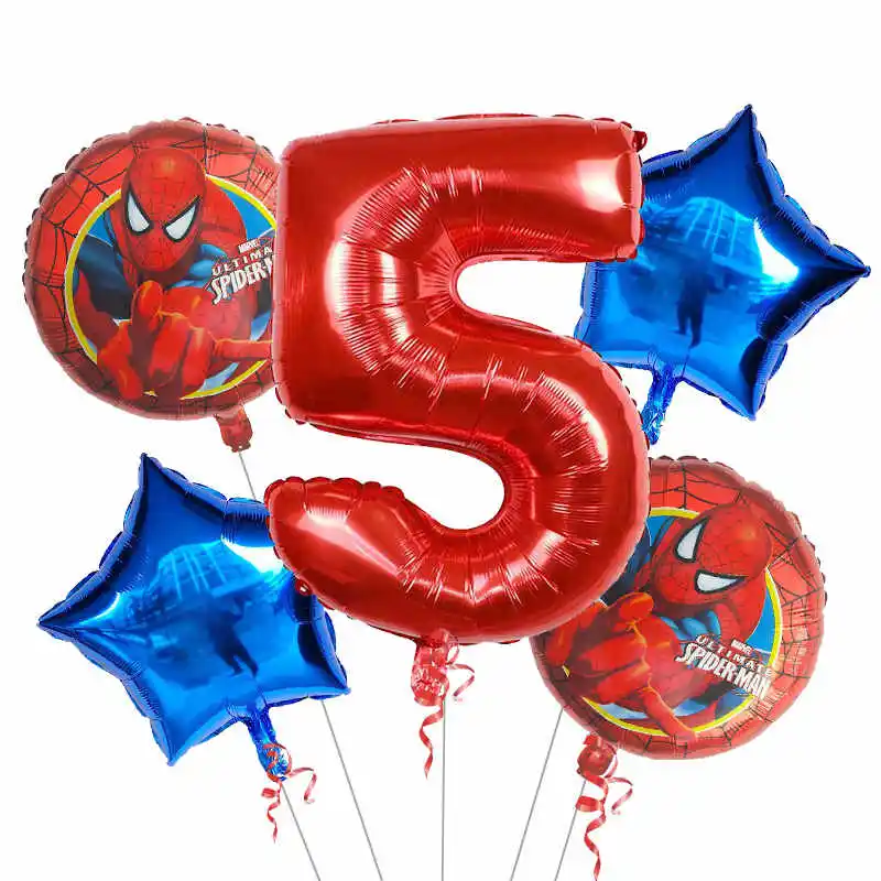 5 шт., воздушные шары из фольги паука, 1, 2, 3, 4, 5, 6, 7, Супермен, герой, украшения для дня рождения, 30 дюймов, красный, синий, цифры, воздушный шар, звезда, детские игрушки