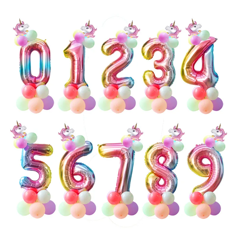 16 шт. Единорог Вечеринка День рождения воздушные шары 32 дюймов Радужный номер воздушный шар День Рождения украшения Дети число для годовщин...